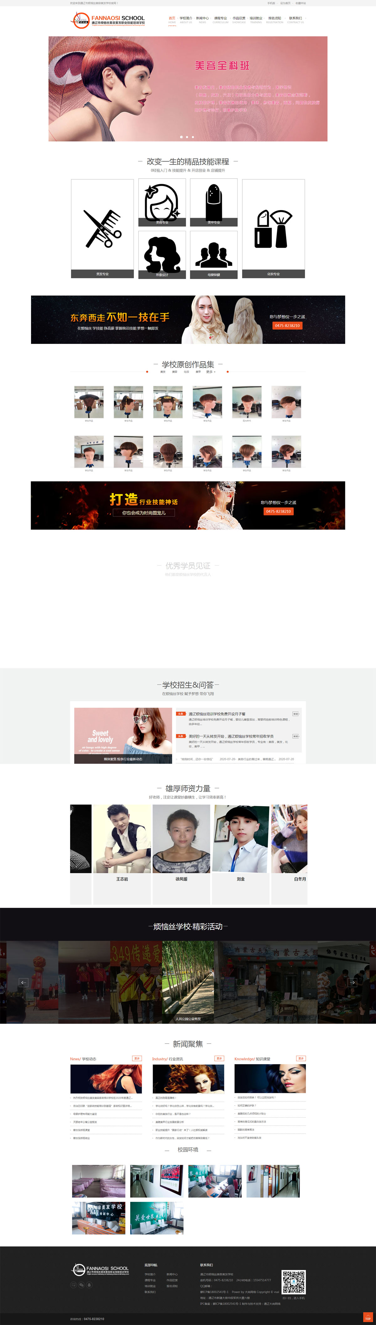 遼市煩惱絲美發(fā)美容專業(yè)學校建校于1987年,是內蒙古勞動廳指定技術等級定點培訓單位,通遼勞動局批準并備案民政局注冊的一所具有近20年歷史的美容美發(fā)化妝攝影名校,通遼市青年就業(yè)培訓基地。學校位于內蒙古通遼市站前長途汽車站北門西側,占地面積1200平方米,集教學,研修,實習,產品經銷,食宿為一體的大 型培訓實體。