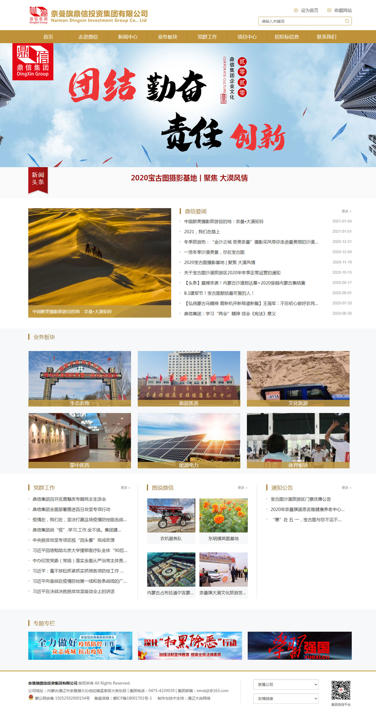 鼎信集團(tuán)在旗委旗政府的堅(jiān)強(qiáng)領(lǐng)導(dǎo)下,將以堅(jiān)定實(shí)業(yè)興企的戰(zhàn)略,以抓實(shí)重大工程建設(shè)項(xiàng)目為主要任務(wù),以推進(jìn)鼎信集團(tuán)轉(zhuǎn)型升級(jí)為主抓方向,以深化企業(yè)內(nèi)部改革為重要抓手,以強(qiáng)化企業(yè)黨建和文化建設(shè)為根本保障,以建設(shè)、經(jīng)營(yíng)、服務(wù)社會(huì)為職能,以戰(zhàn)略轉(zhuǎn)型和管理提升為主線(xiàn),整合各領(lǐng)域的上下游資源,推動(dòng)關(guān)聯(lián)產(chǎn)業(yè)“三位一體”融合發(fā)展,將現(xiàn)代農(nóng)業(yè)、沙漠旅游、旅居康養(yǎng)等產(chǎn)業(yè)深度融合。同時(shí),抓住蒙中藥材、光伏發(fā)電、大數(shù)據(jù)等現(xiàn)代新興產(chǎn)業(yè)發(fā)展契機(jī),走穩(wěn)健經(jīng)營(yíng)、多元發(fā)展之路,實(shí)現(xiàn)經(jīng)濟(jì)效益、生態(tài)效益、社會(huì)效益多贏。